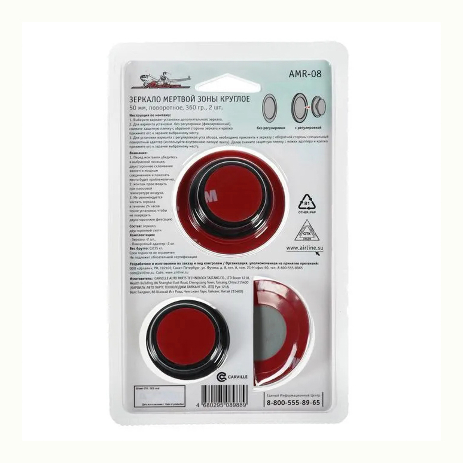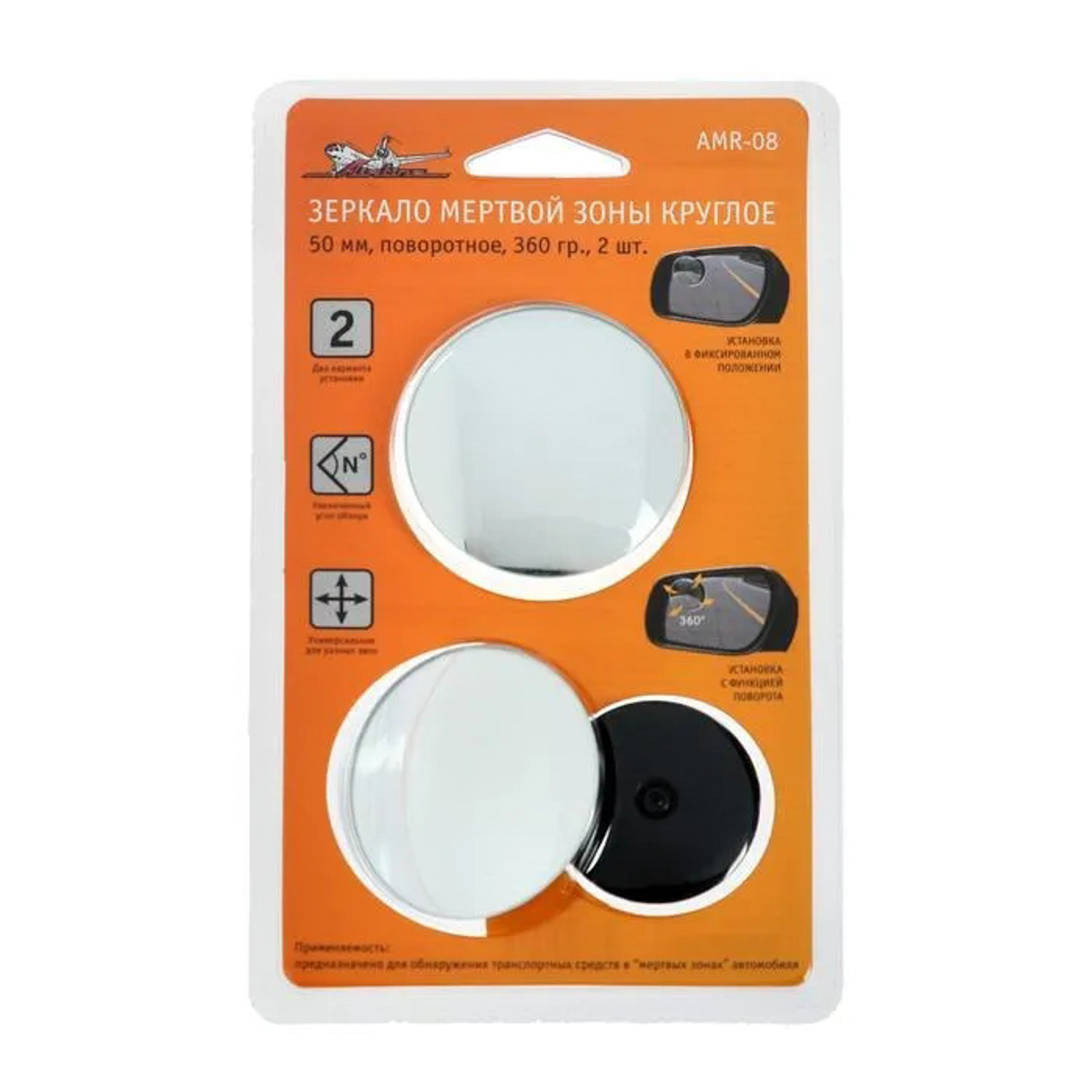 Зеркало мертвой зоны Airline AMR-08, круглое, 50 мм, набор 2 шт 5204575