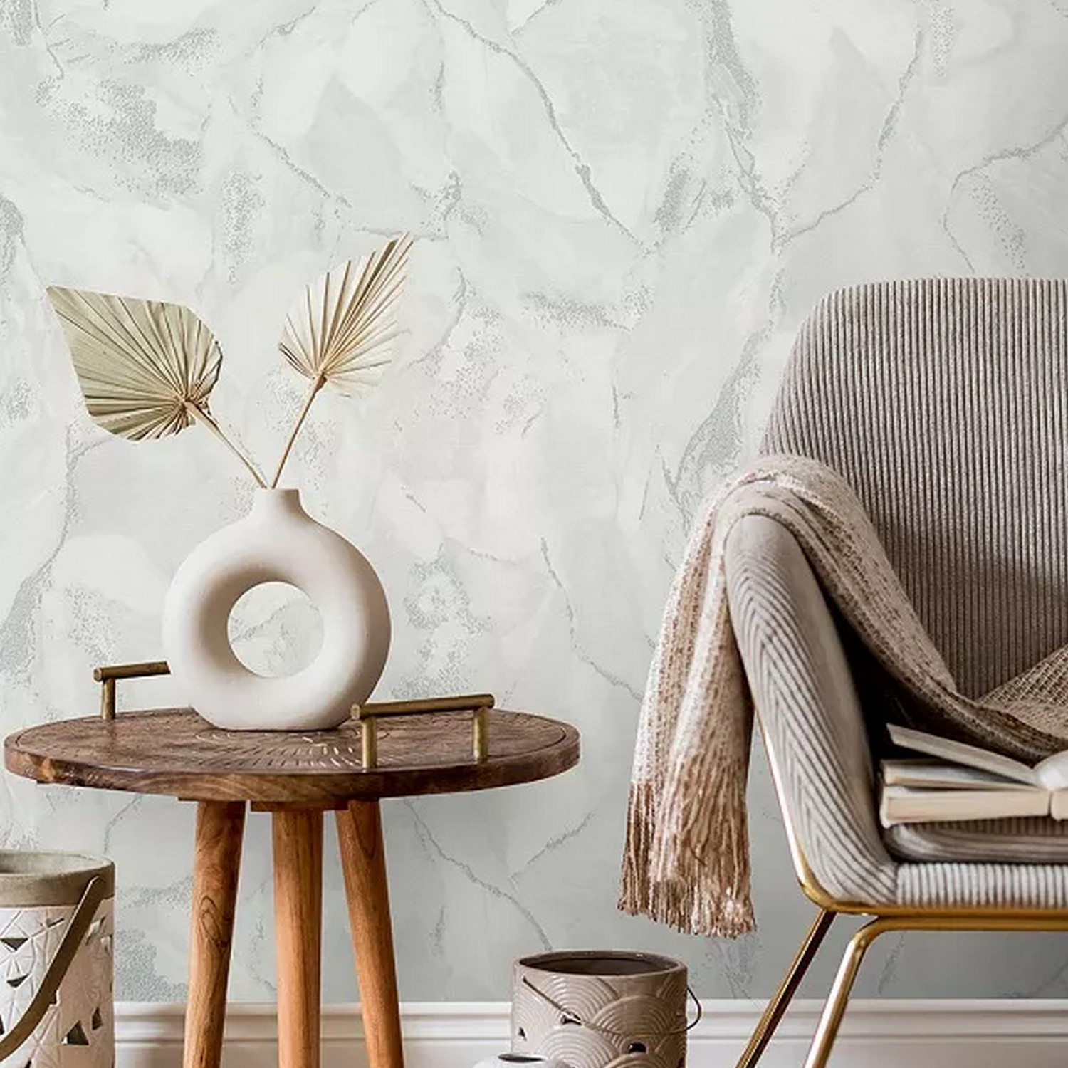 Фон коллекции «Fern» выполнен в спокойных пастельных тонах и имитирует текстуру рогожки, покрытую перламутром. Такое решение поддерживает основной мотив и придает всей коллекции атмосферу уюта и комфорта.