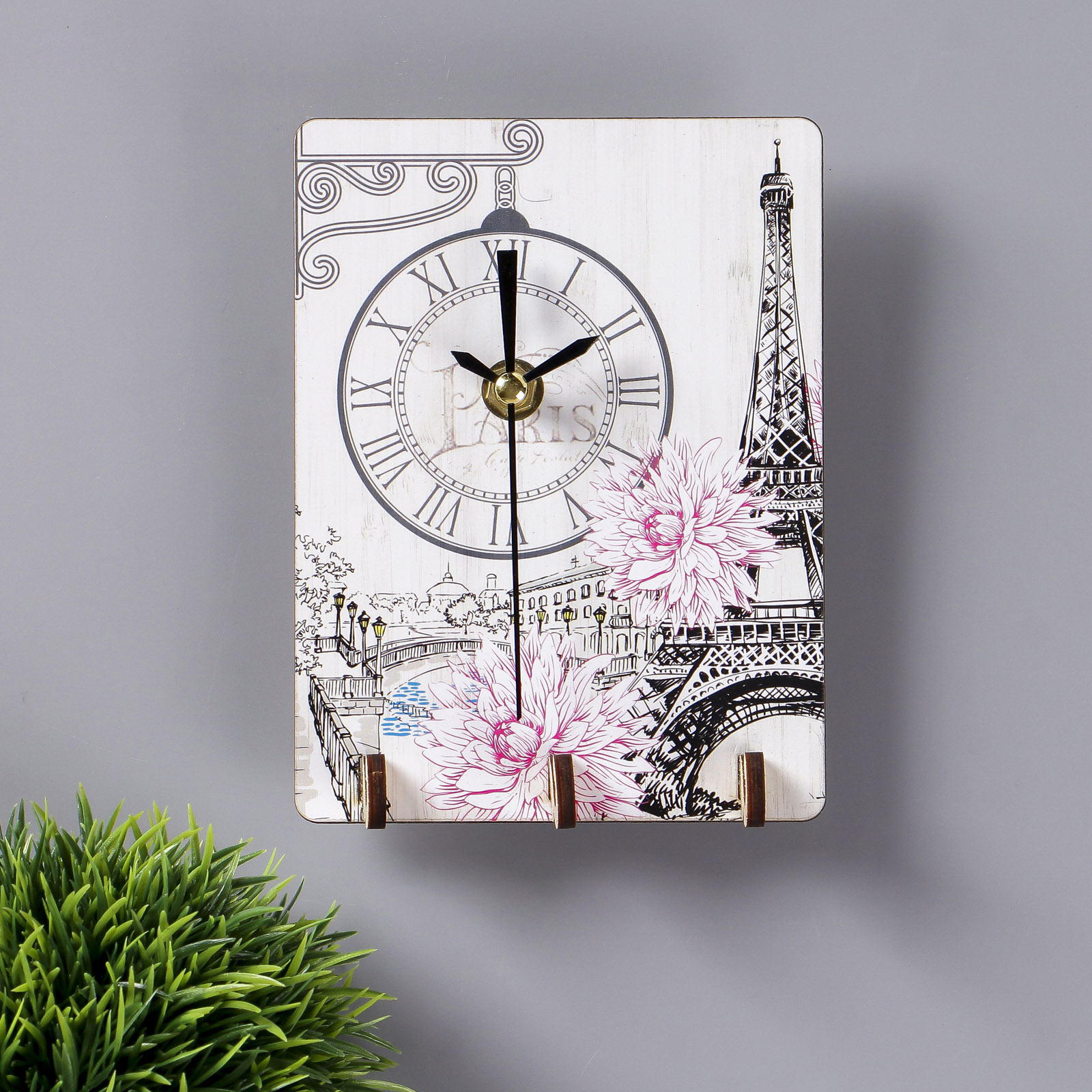 Ключница открытая с часами "Париж" 12х16 см 3825470