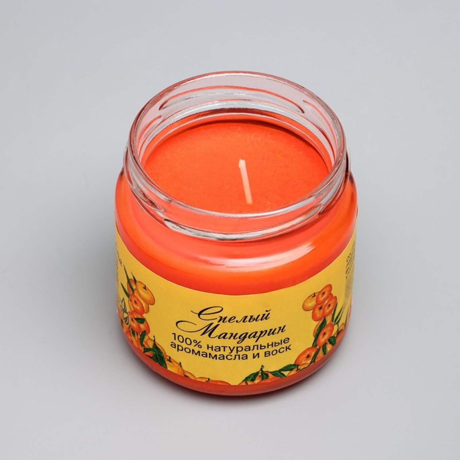 Натуральная эко свеча из пальмового воска, "Спелый мандарин", оранжевая, 7х7,5 см, 14 ч 6766593