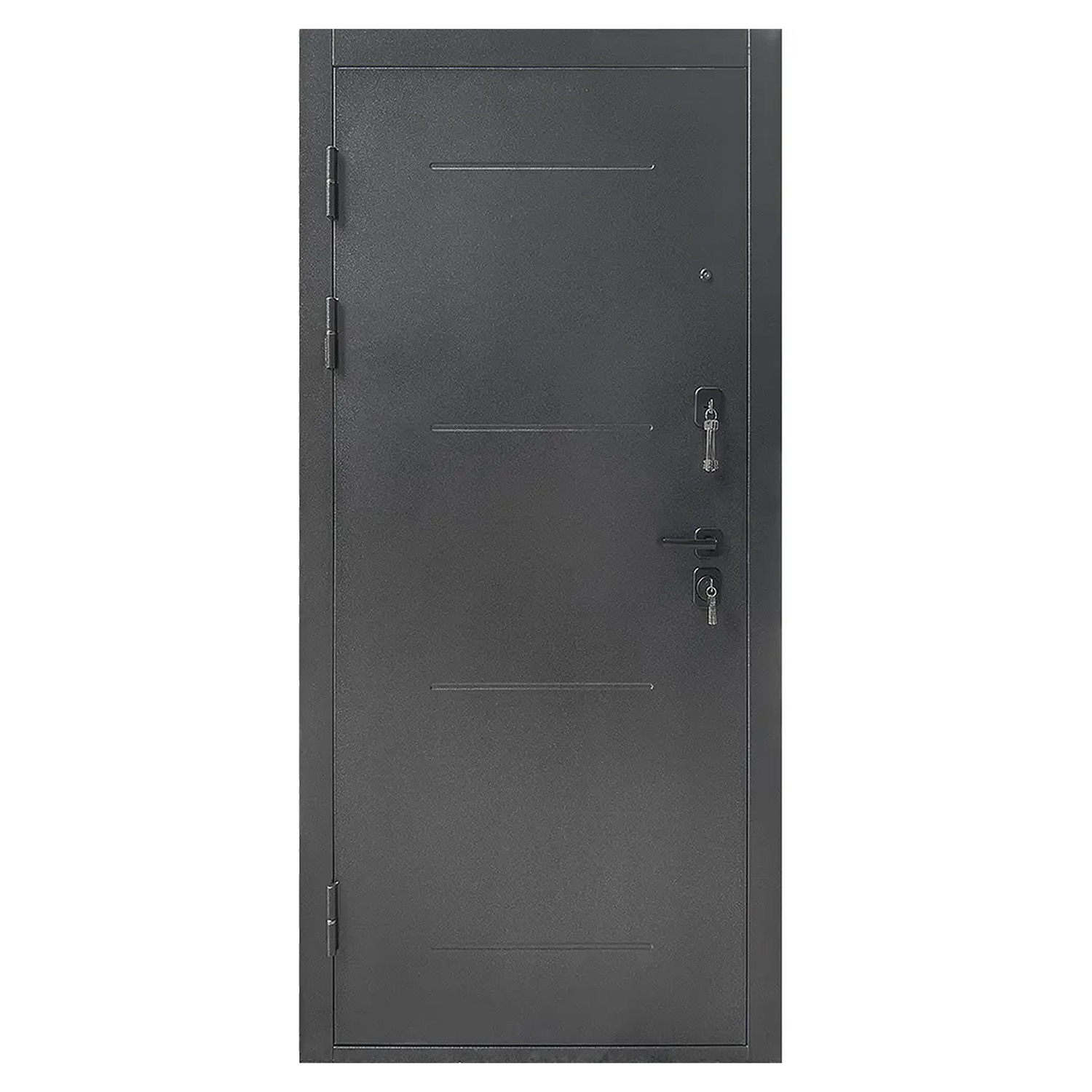 Дверное полотно, дверная коробка, замок основной, замок дополнительный, петли - 3 шт., ручки, наклад