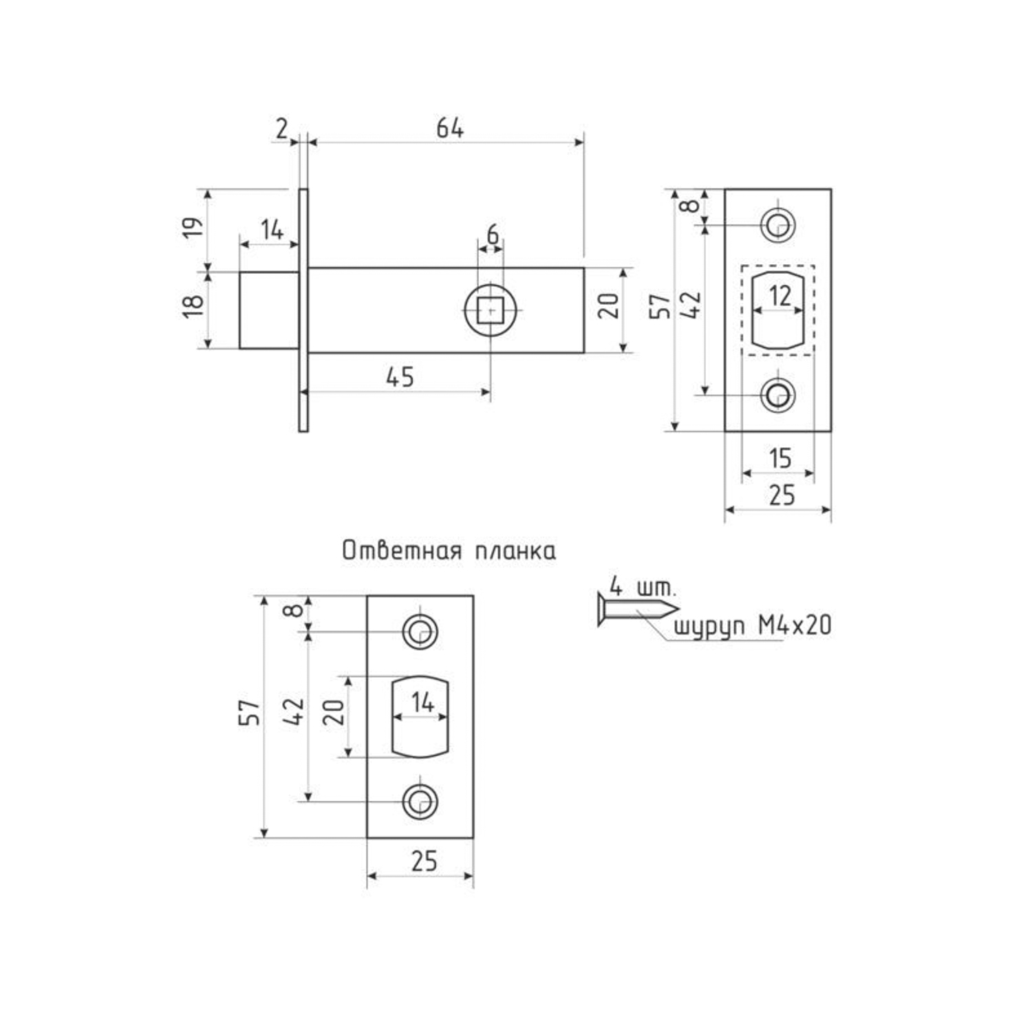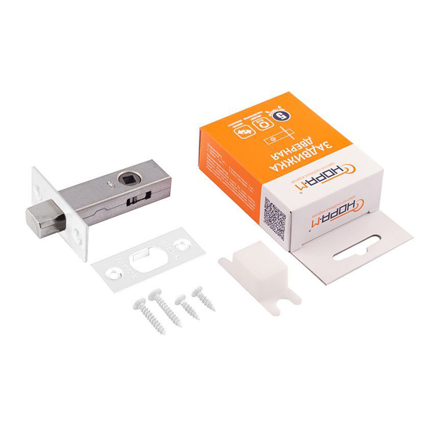 Задвижка дверная врезная д/дерев.дверей БЕЛАЯ З-45 Нора-М *1/20/100