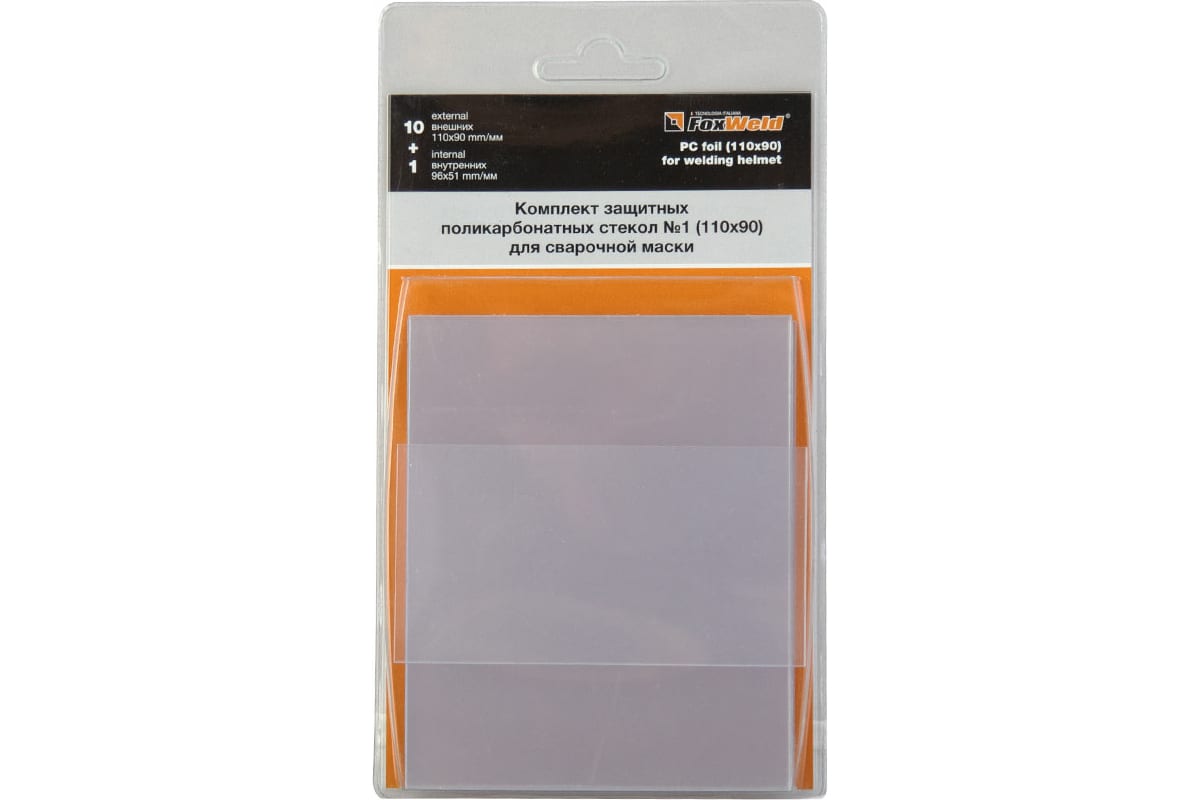 Стекло сменное для маски сварщика 110*90мм (набор11шт) арт.6590 FoxWeld *1/6