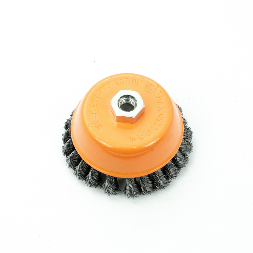 Щетка-крацовка "чаша" витая,жесткая проволока 125мм 0,5мм М14мм для УШМ арт.36200125 Bohrer *1/40