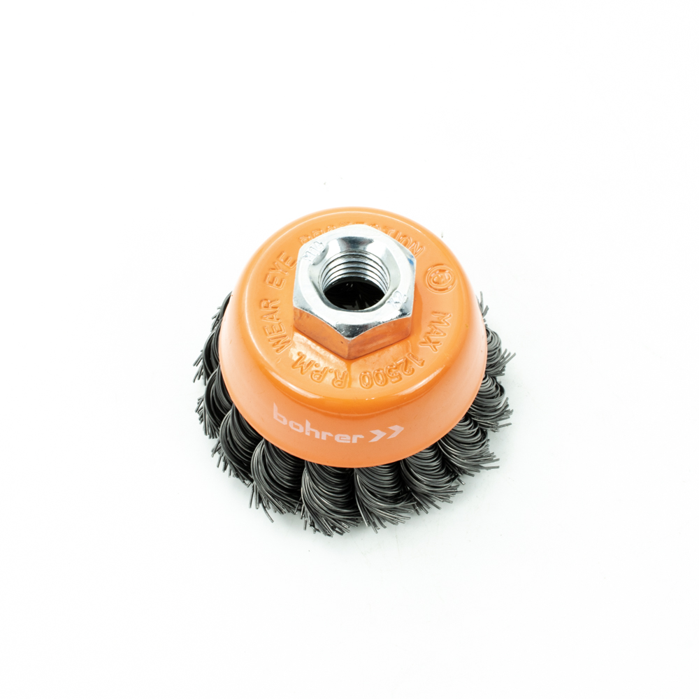 Щетка-крацовка "чаша" витая,жесткая проволока 65мм 0,5мм М14мм для УШМ арт.36200065 Bohrer *1/100