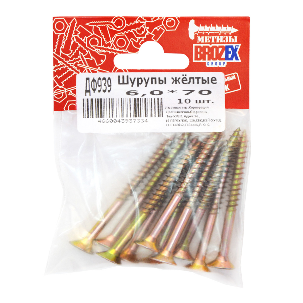 Шурупы жёлтые BROZEX пакет 6*70 (10шт) *10/100