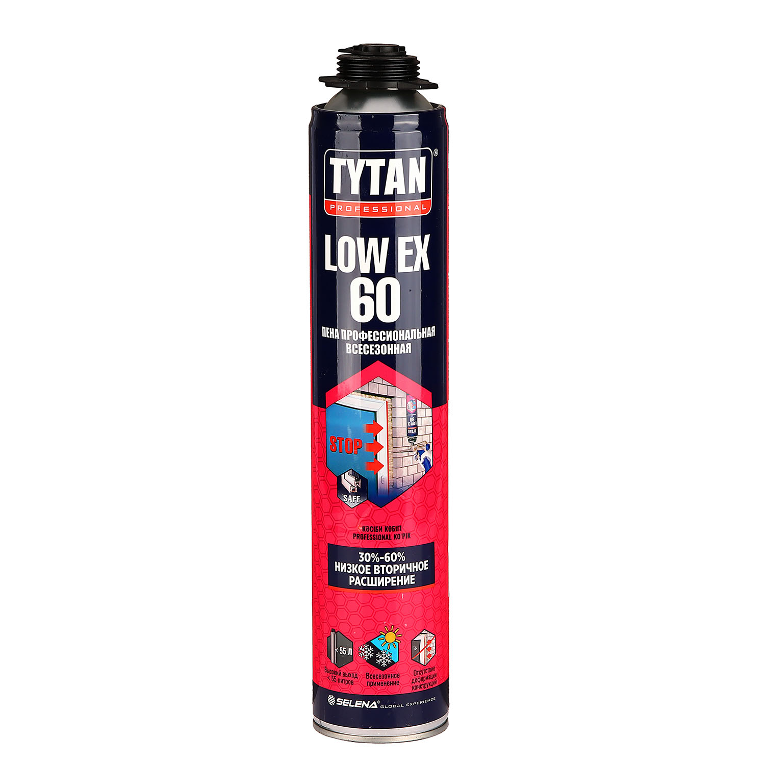 Пена монтажная профес. 1000мл/907гр (750мл) всесезонная "TYTAN LOW EX 60" до 60л (низкое расширение) *1/12