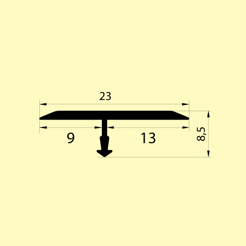 Стык Т-образный разносторонний 23х1800 мм Русский профиль, груша белая — плоский алюминиевый порог для маскировки монтажных зазоров между одноуровневыми поверхностями. Профиль можно устанавливать на стыке как однородных покрытий, так и материалов разных типов. Подходит для паркета, ламинированного паркета, керамической плитки.