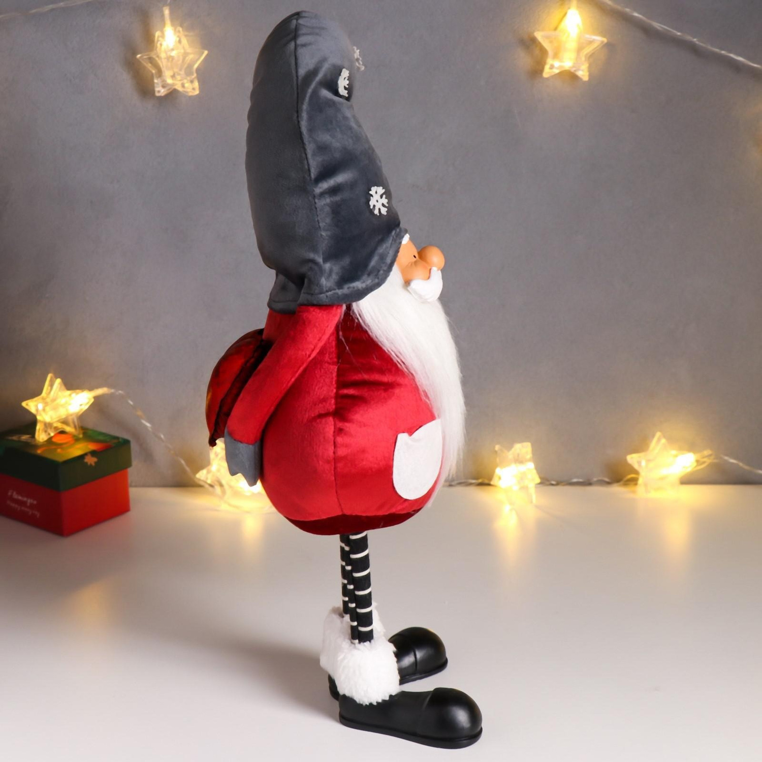 Кукла интерьерная "Дед Мороз в бордовом кафтане, в сером колпаке со снежинками" 42х13х18 см 626