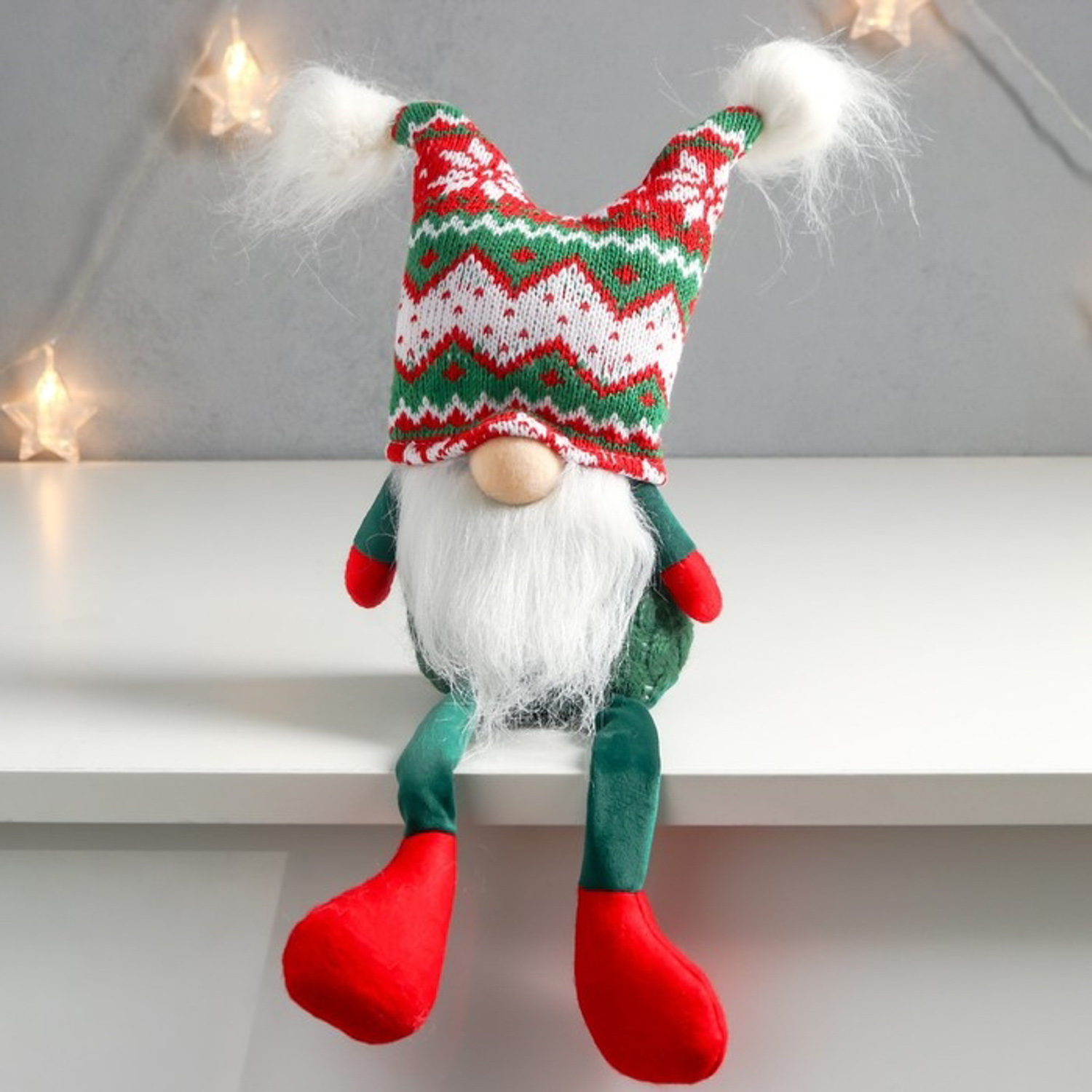 Кукла интерьерная "Дед Мороз в шапке с зелёными узорами, с бомбошками" 41х13х10 см 7575275