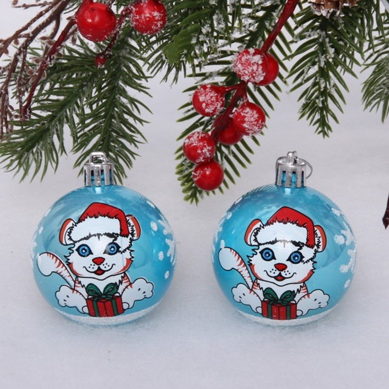 Новогодние шары "Тигрёнок" 6 см (набор 2шт), голубой