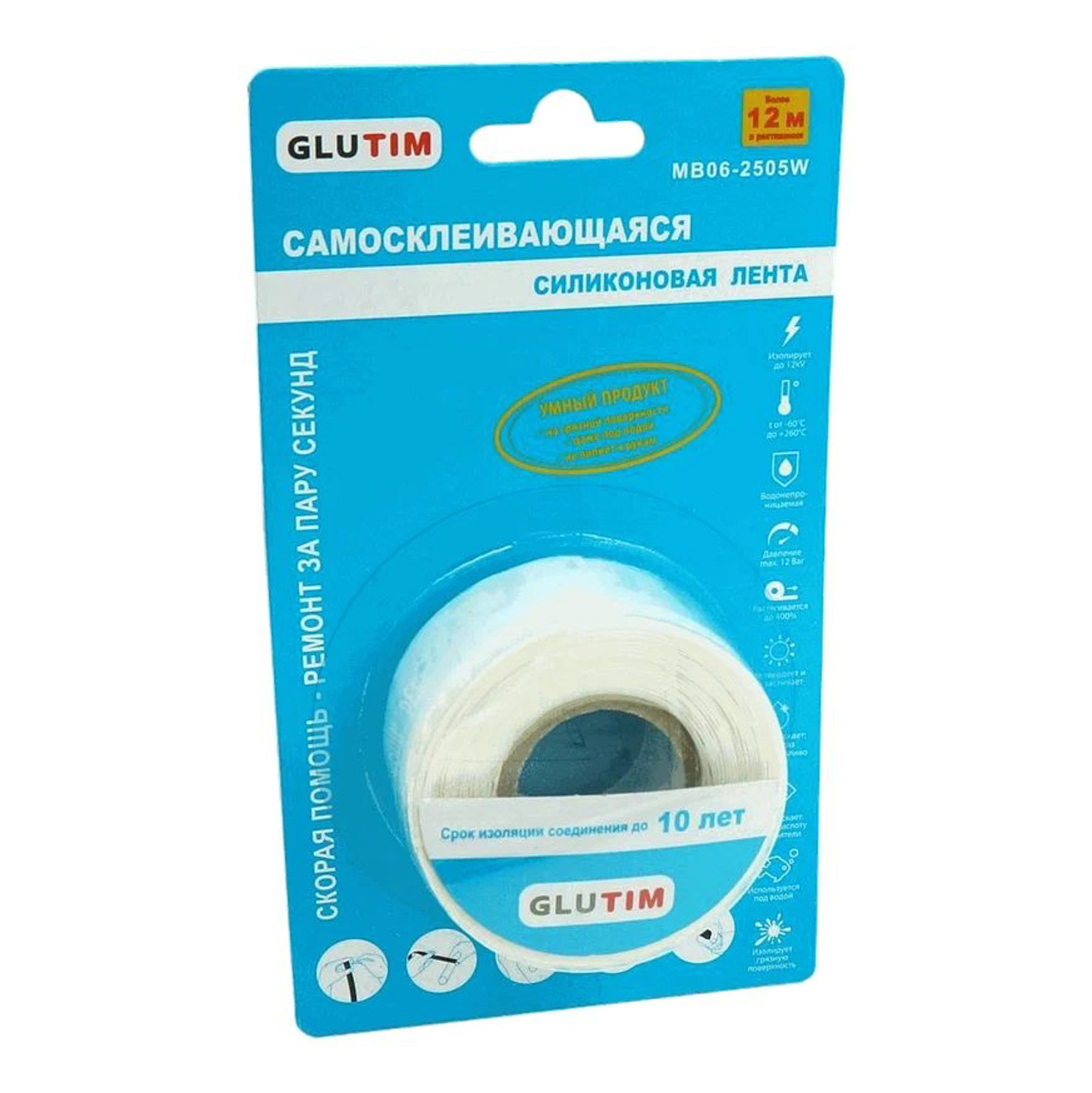 Лента монтажная силиконовая белая GLUTIM 25мм*0.5мм*3м TIM MB06-2505W *1/10/60