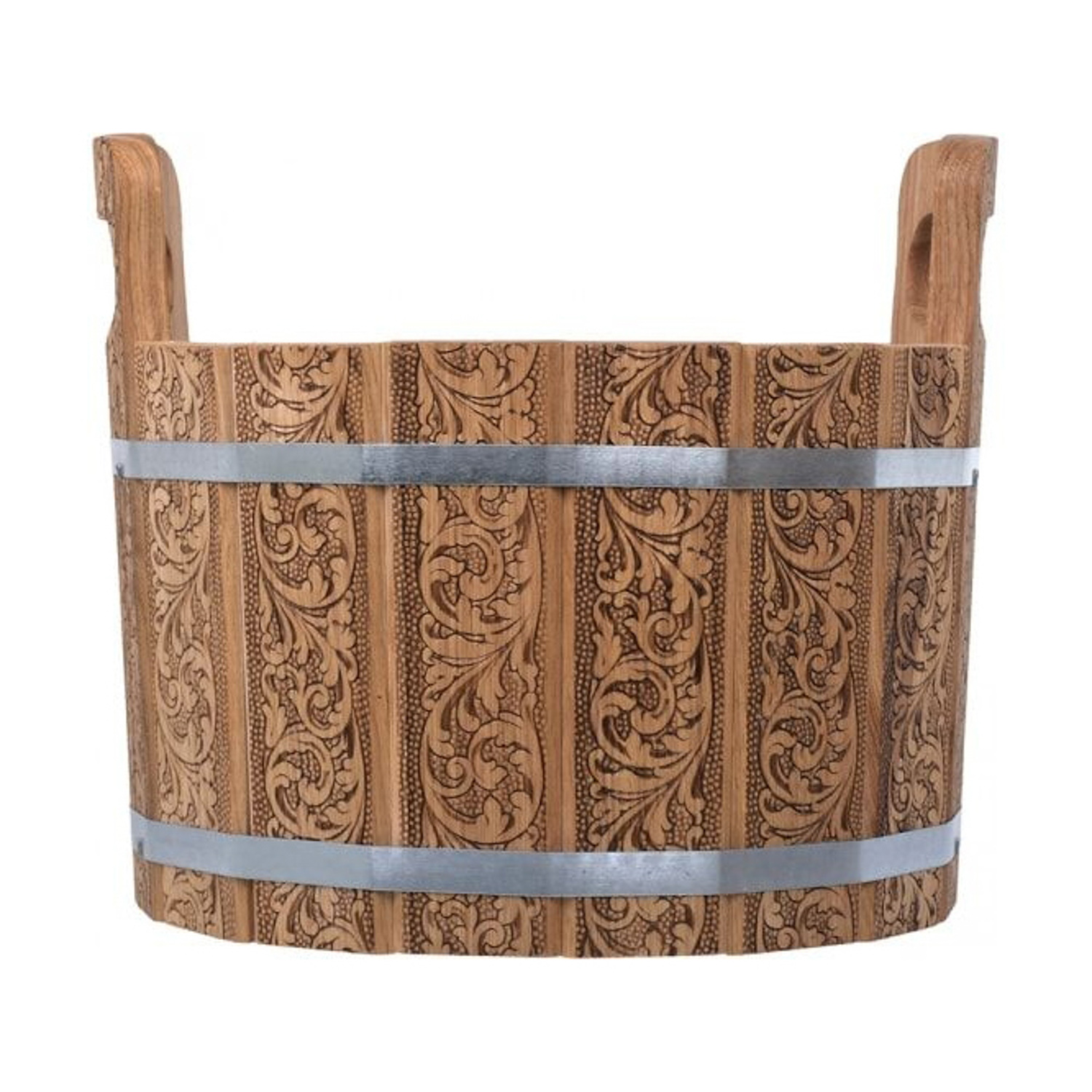 Ушат "шайка", 10 л, «Цветочный орнамент», c нержавеющей вставкой, дуб "Банные штучки" в кор./1