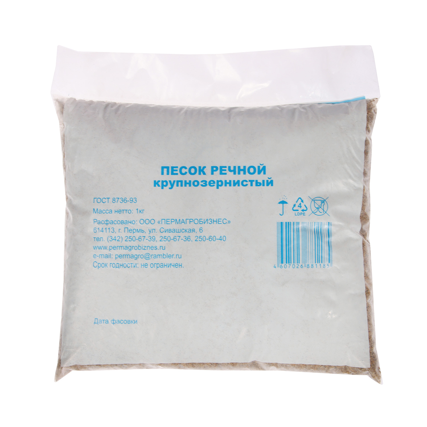 Песок речной крупно-зернистый Пермагробизнес, 1 кг
