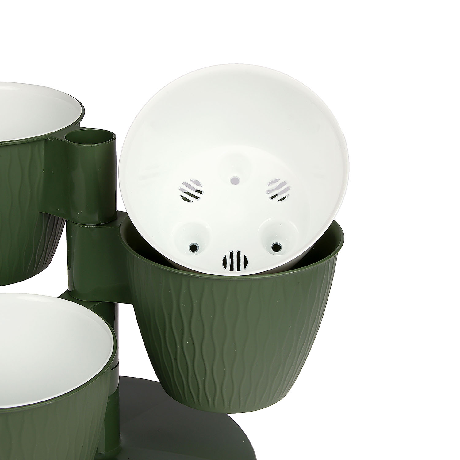 Кашпо-"Каскад" 3-х местная пластм. "Пирамида"  d верха 125мм h100мм со вставками Нефрит *1/10