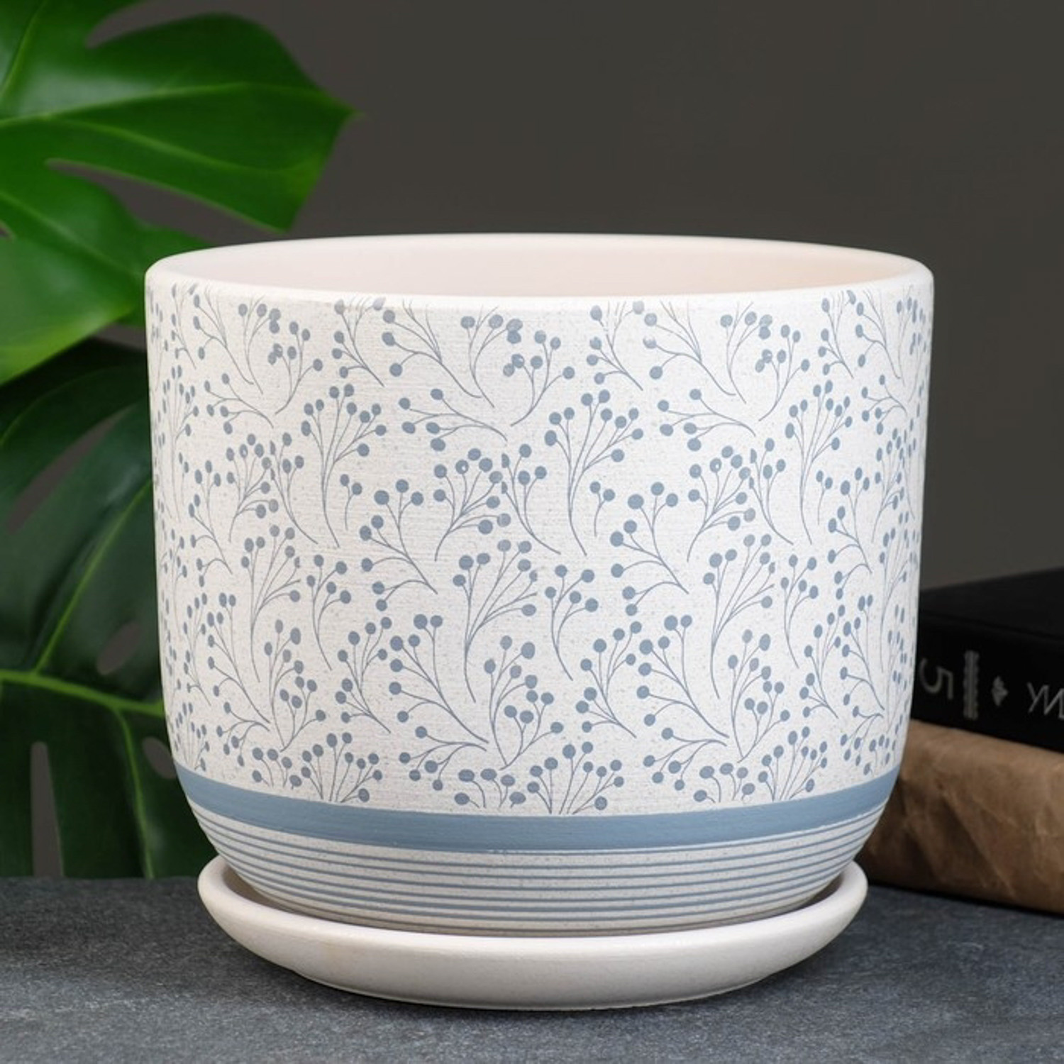 Кашпо керам. "Лён" 2,79л d верха 186мм h160мм с поддоном Белый бук №3 КС-Бук3-241-03 *8