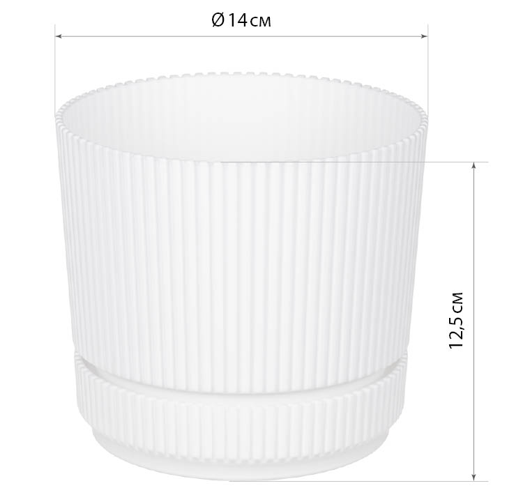 Кашпо пластм. "Стрип" 1,3л d верха 140мм h125мм с поддоном Белый М3246 ("М-Пластика") *1/12