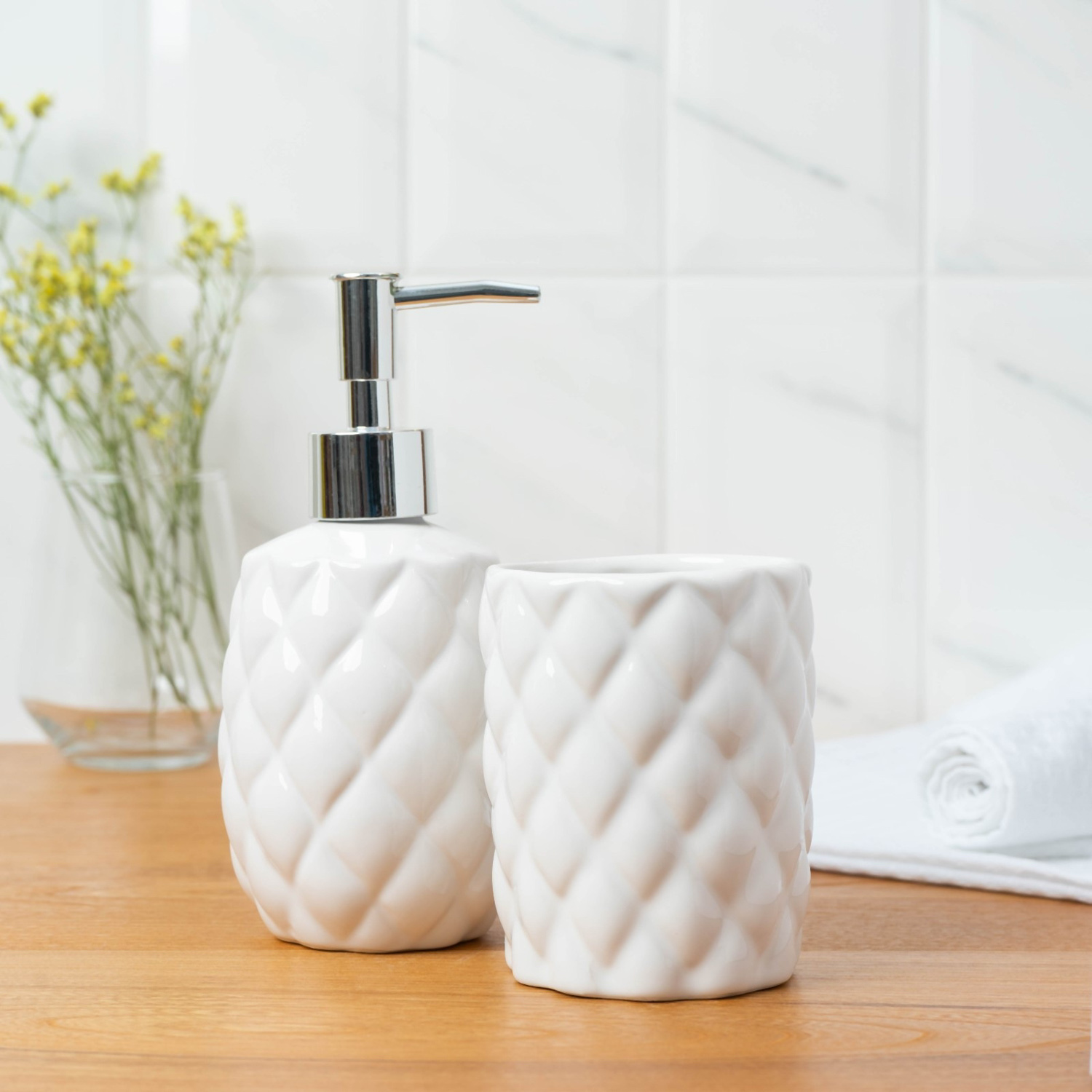 Набор для ванной Ромбус, 2 предмета (дозатор для мыла, стакан), цвет белый   6243798