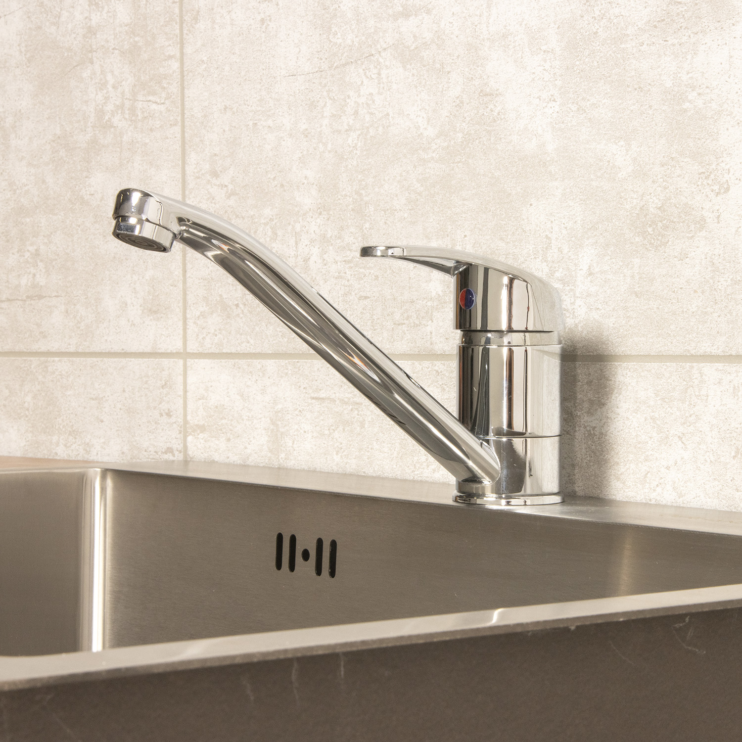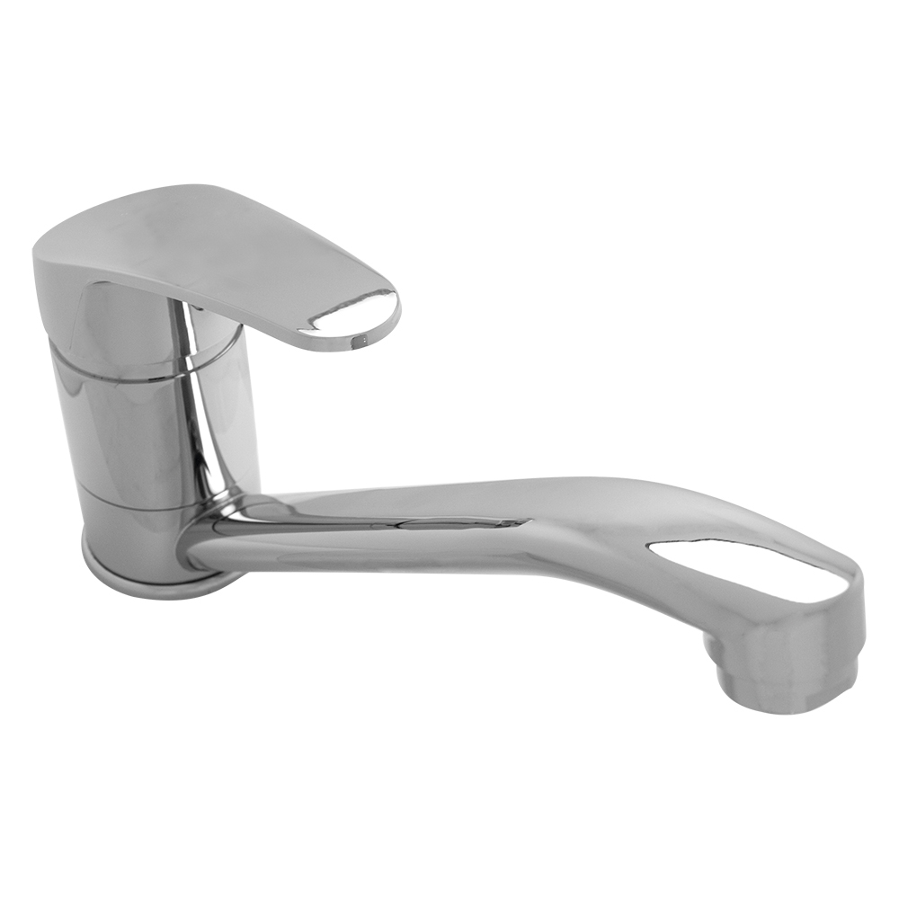 Однозахватный смеситель RC014A для кухни с верхним расположением ручки типа «С» из прочного пластика с устойчивым никель-хромовым покрытием. Крепление к столешнице или мойке осуществляется на штуцер с помощью удобной комбинированной гайки с металлической резьбовой вставкой и прокладок.