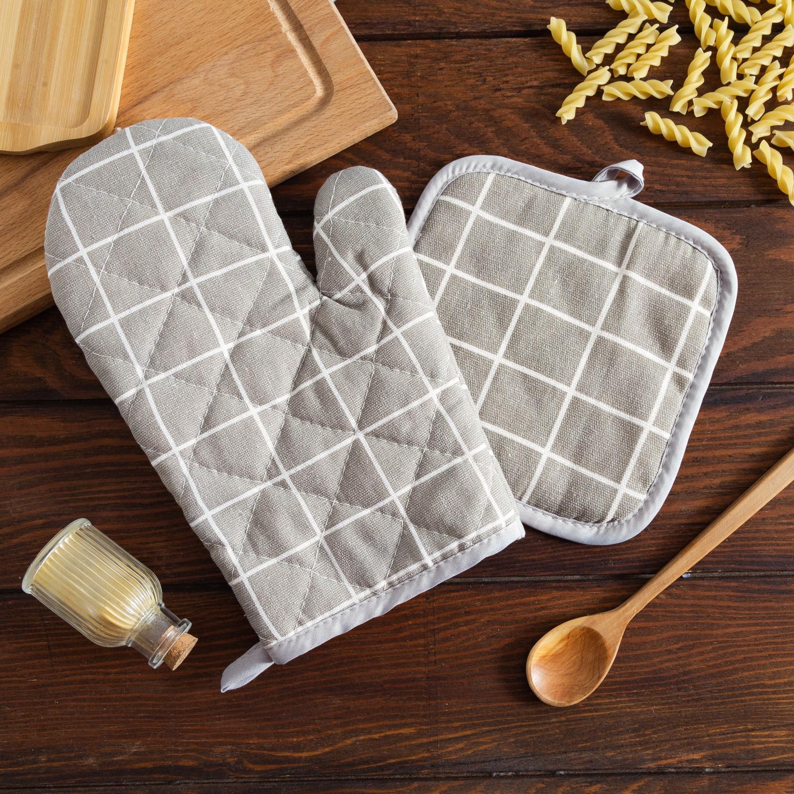 Набор прихваток Клетка варежка-прихватка 26х16см, прихватка 17х17см 100% полиэстер Доляна *1
