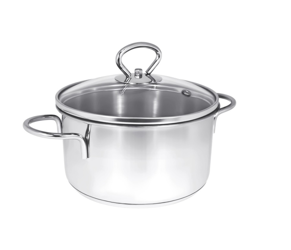 Кастрюля нерж. "Наше не заржавеет!" 1,9л d16см термораспред. дно, Стекл. кр. Н-1609ДСП4 *1/4