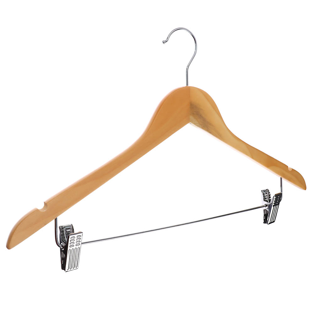 Плечики-вешалка для одежды дерев. с метал.зажим. д/брюк и юбок 45см Св.дер. (арт.455-054) *1/100