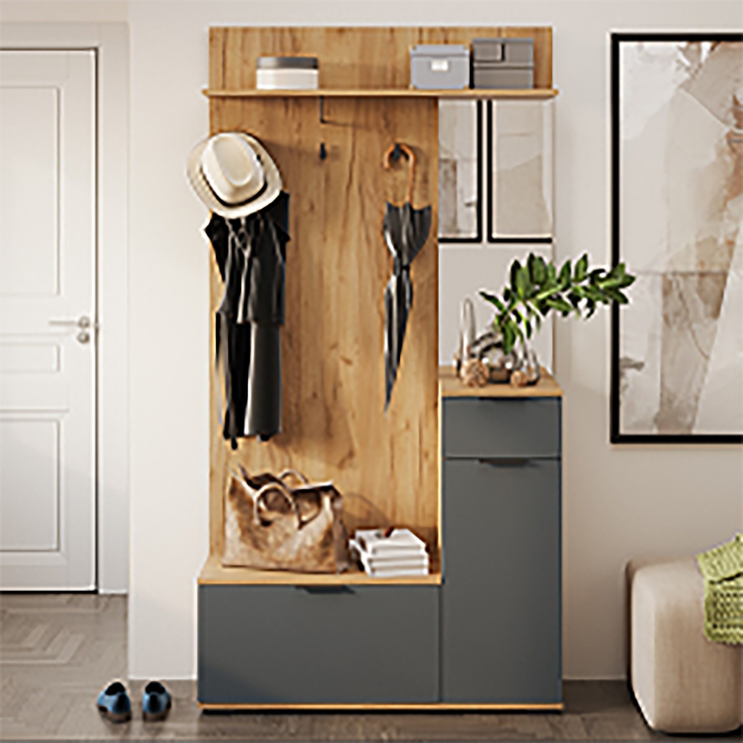 яяяНабор мебели для прихожей ЭВИТА секция комбинированная Тип1 дуб крафт золотой/графит серый *1