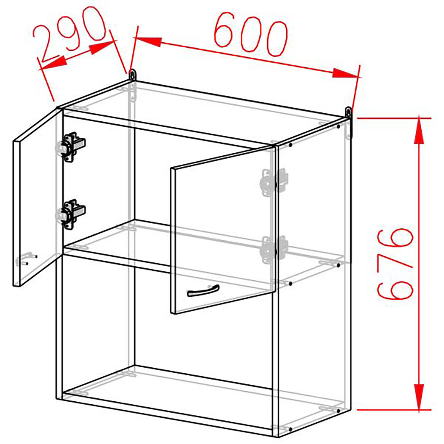 Шкаф навесной 600х676х290 мм BROZEX-WOOD Viola, с двумя дверцами, белый