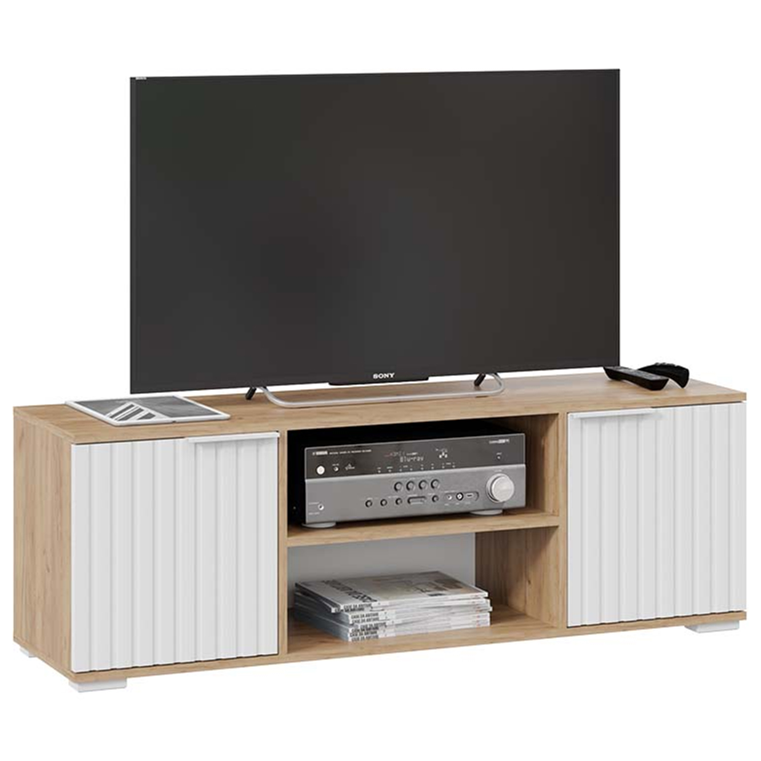 Тумба под ТВ Хилтон 1711х374хh452 (Дуб Крафт золотой, Белый матовый)*1