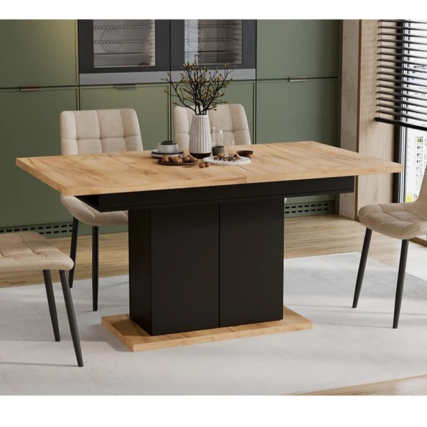 Стол обеденный прямоугольный раздв.Детройт Тип1 850х1504(2014)х h770 Черный, Дуб Крафт золотой*1