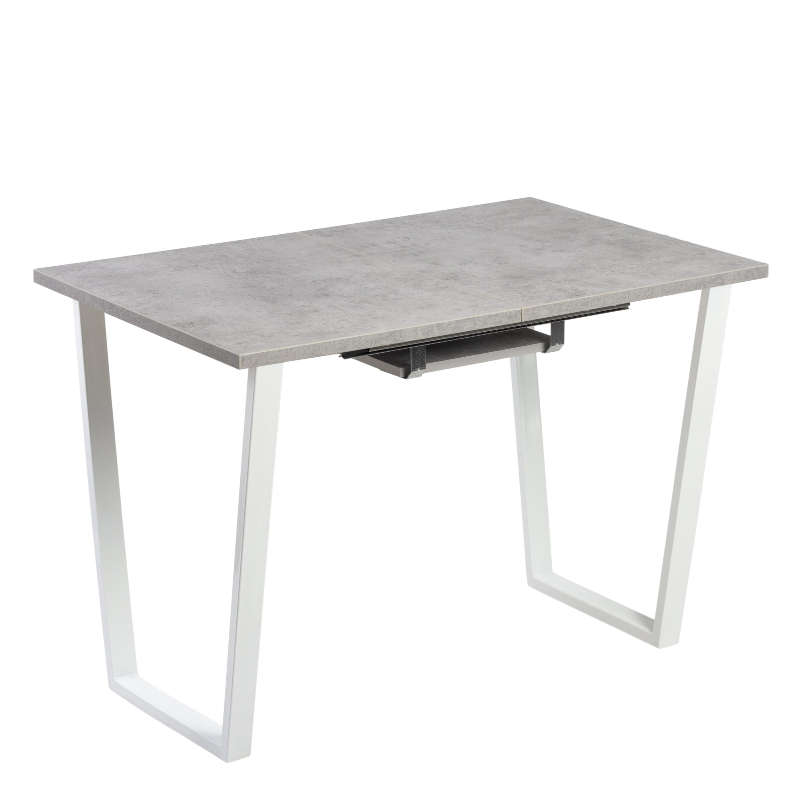 Стол раздв.АТЛАНТ-2 1200(+500)*800*h750мм ЛДСП EGGER Бетон Чикаго светлый+опора метал.Белый глянец*1
