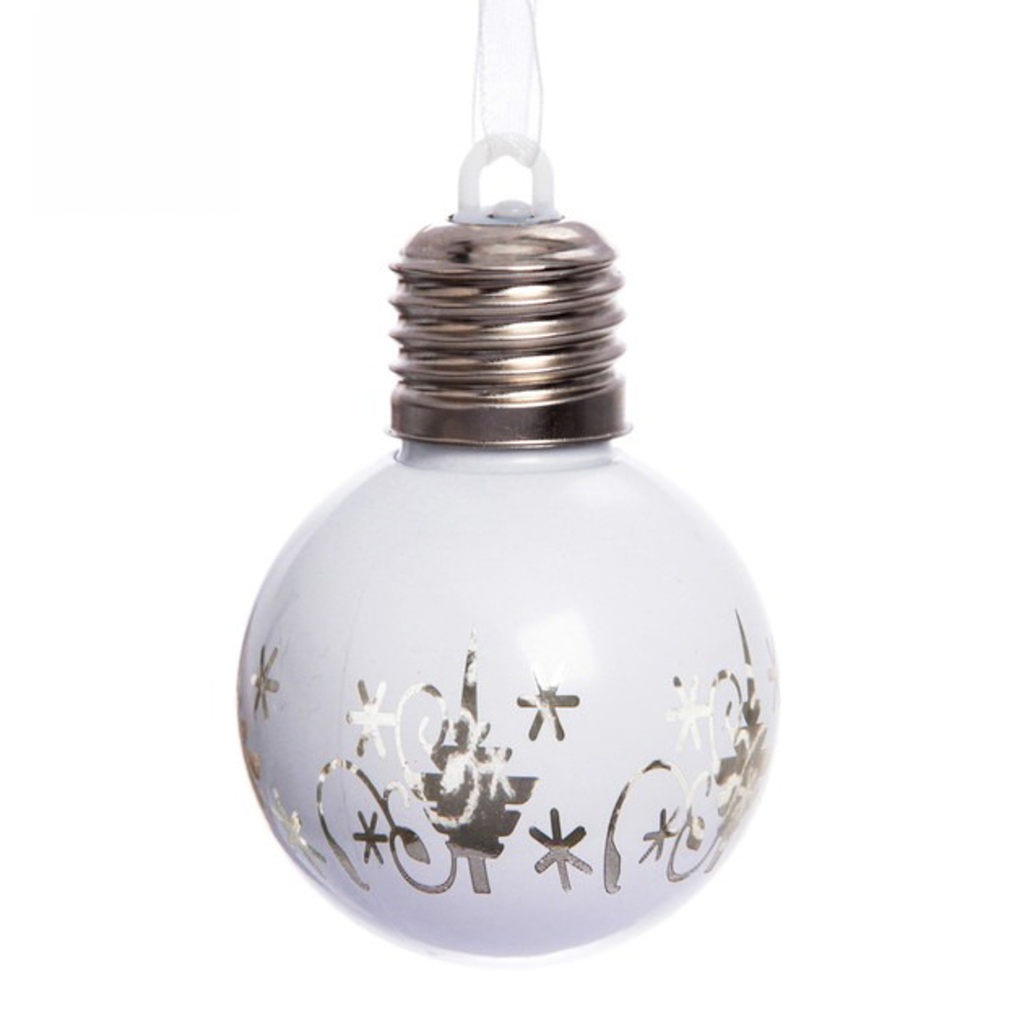 яяяПодвеска ШАР с подсветкой 6 см "Сказочный лес", Белый (подсветка Теплый белый)