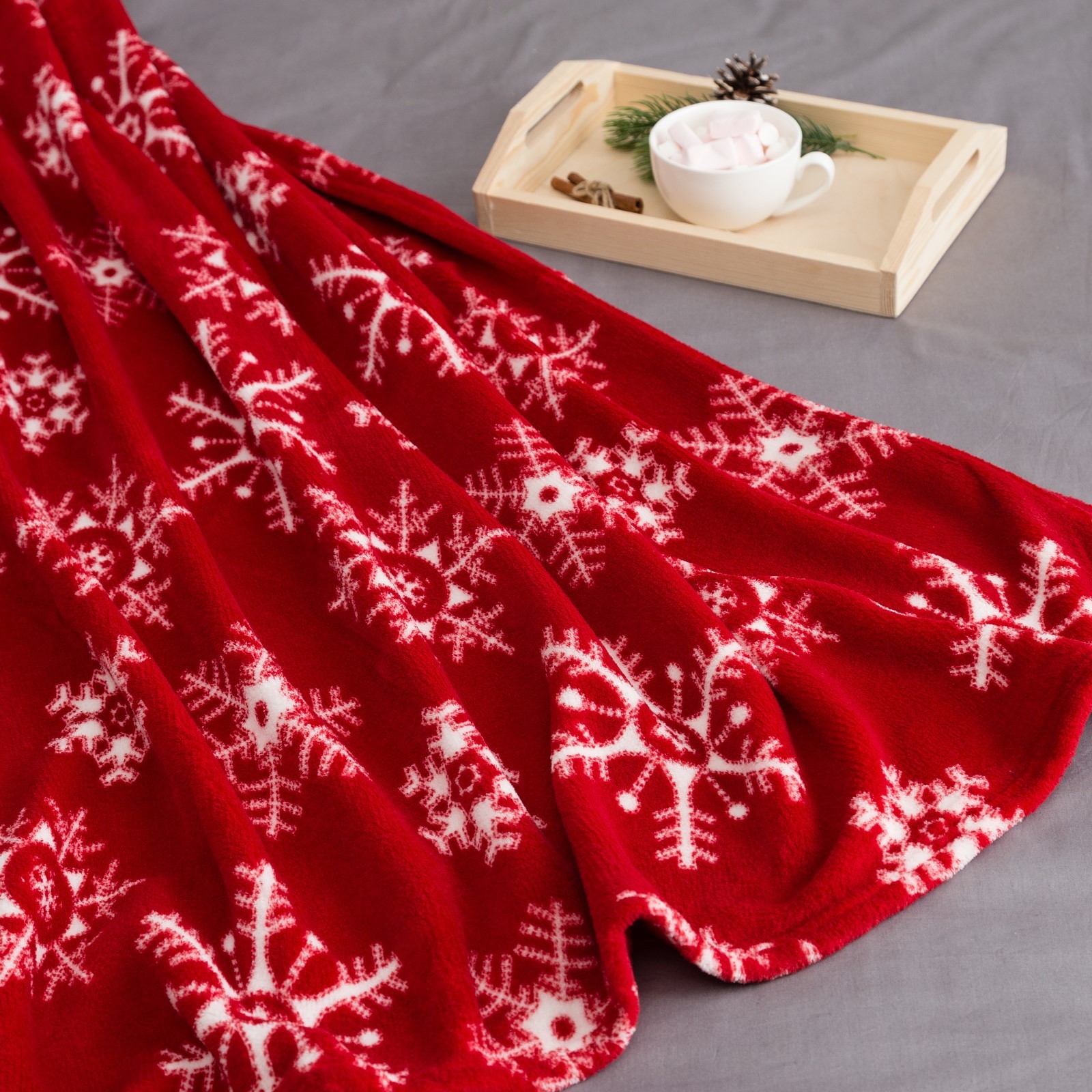 Плед 180*200см корал-флис Снежинки красный Этель *1