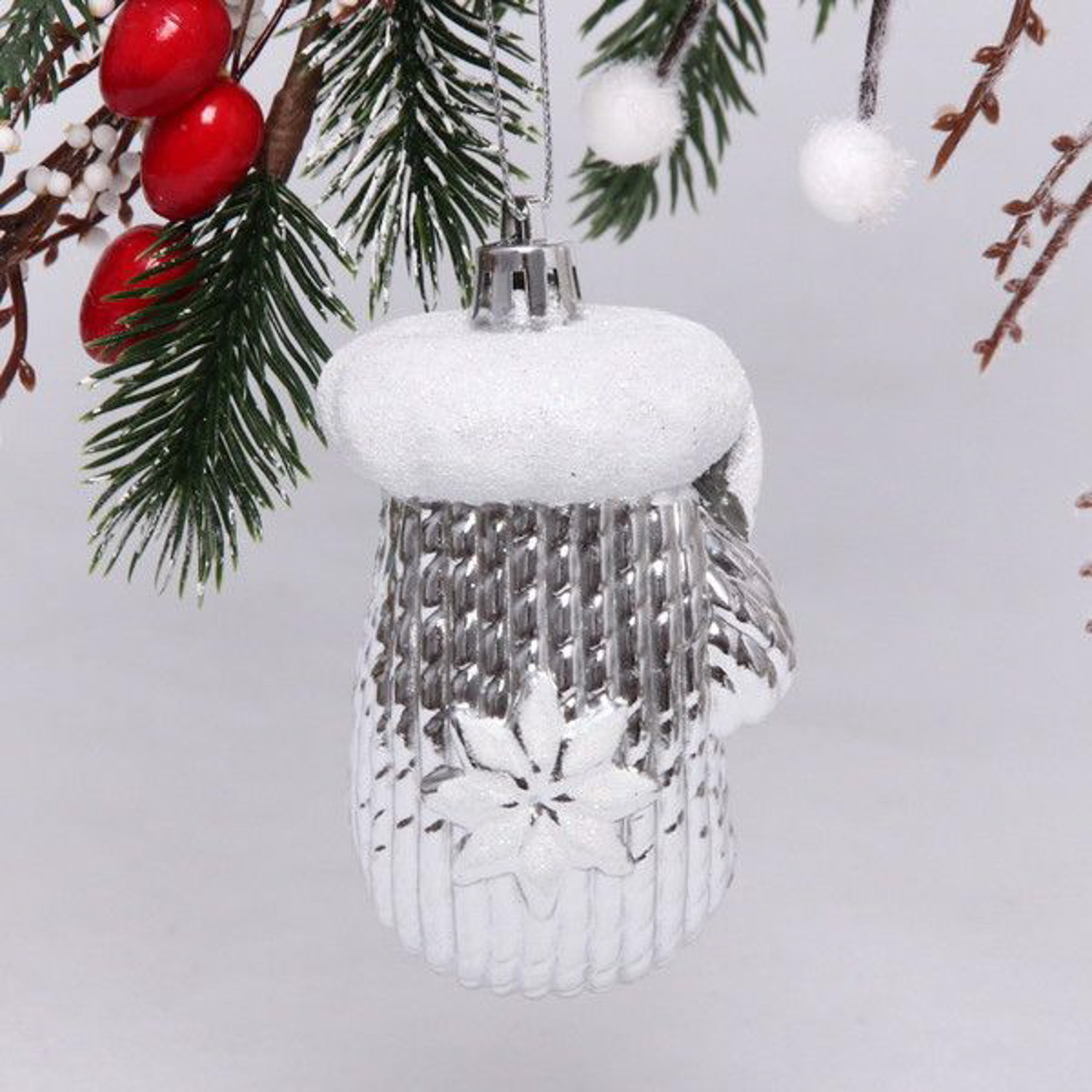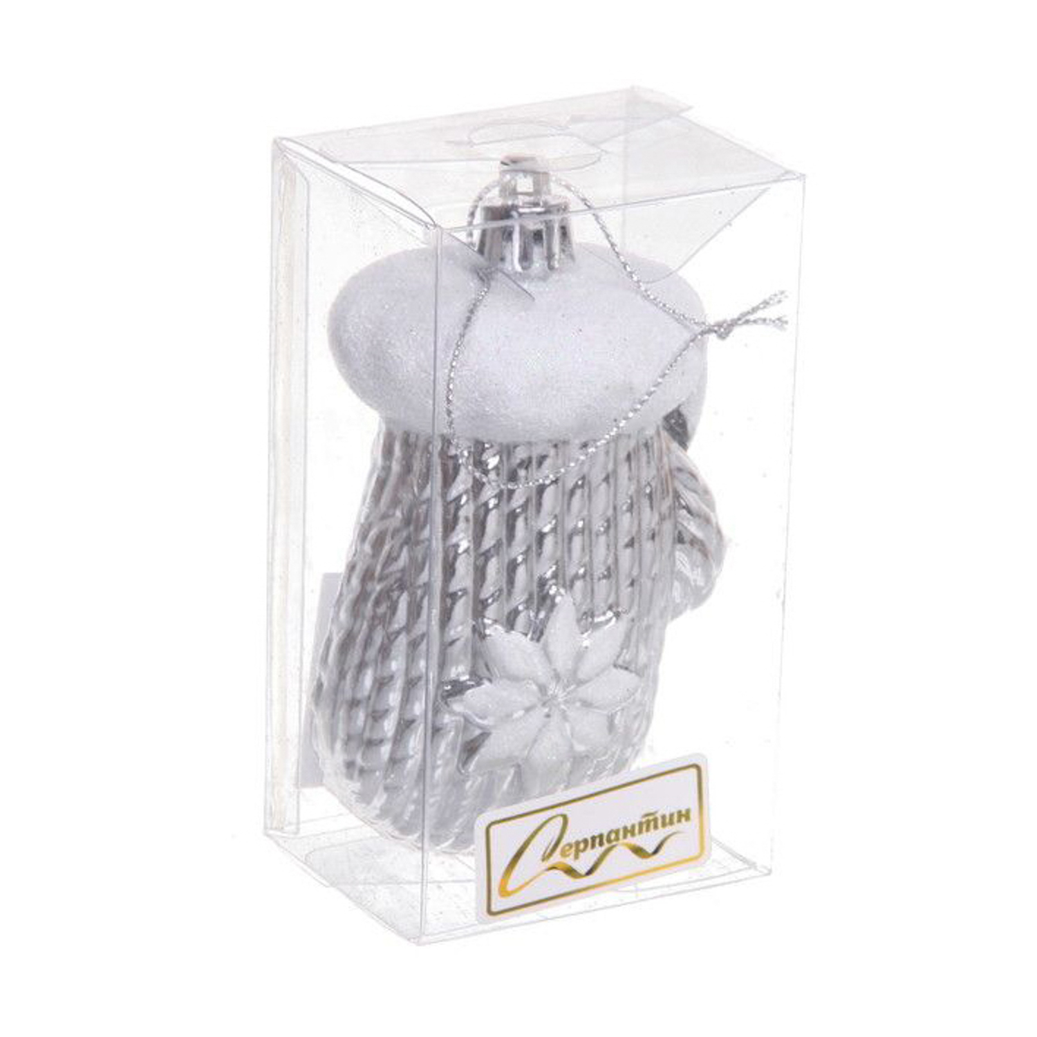 Ёлочная игрушка Новогодняя варежка 5*4*10 см, серебро