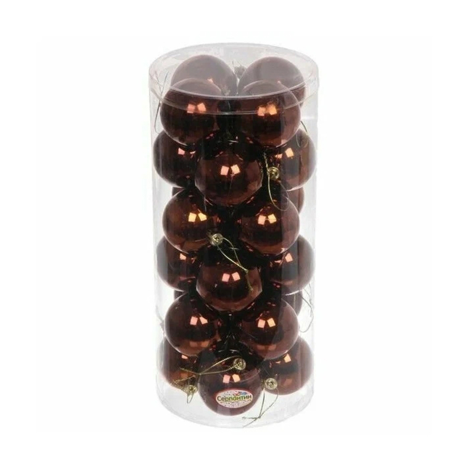 Набор новогодних шаров "Глянец", диаметр 6 см, 24 шт., шоколад