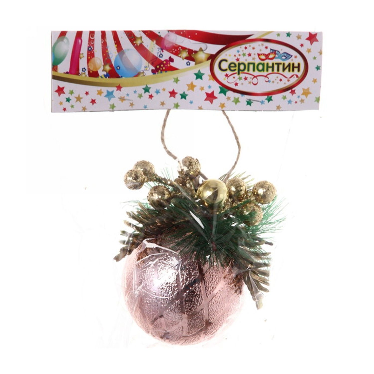 Новогодний шар "Лесная сказка", диаметр 8 см, розовое золото