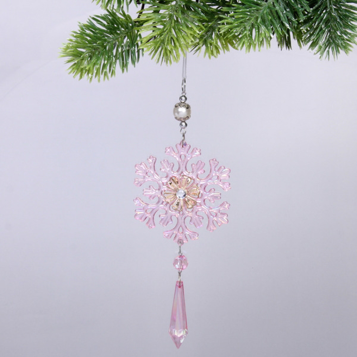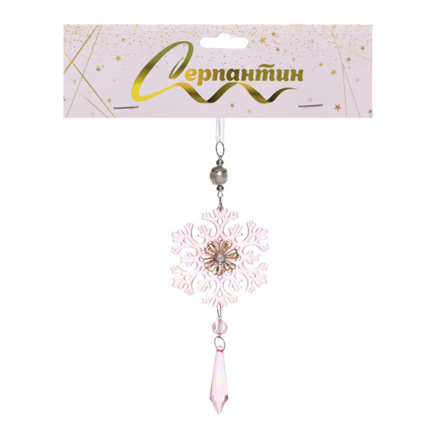 Подвеска "Ледяная снежинка" 8,5*20 см, Розовый