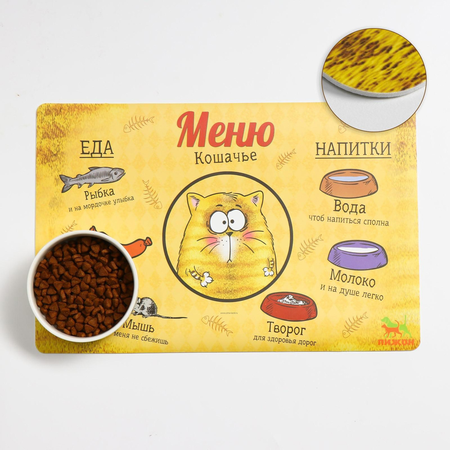 Коврик под миску "Пижон" с нескользящим основанием, 43 х 28 см, "Меню кошачье" 3664897