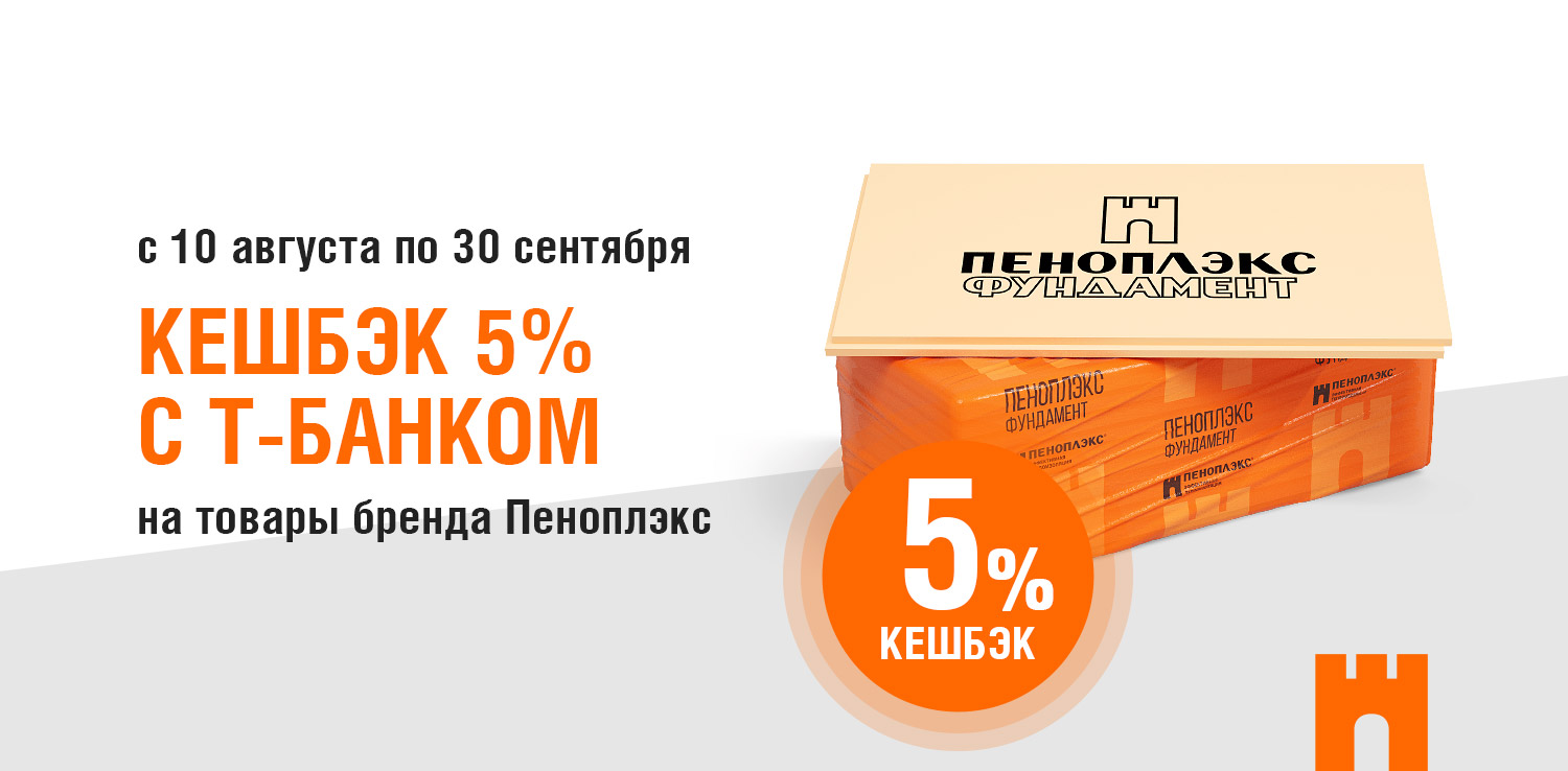 Планируете выгодную покупку стройматериалов? С 10 августа по 30 сентября получайте 5% кешбэка при покупке товаров бренда Пеноплэкс по карте Т-Банка!
