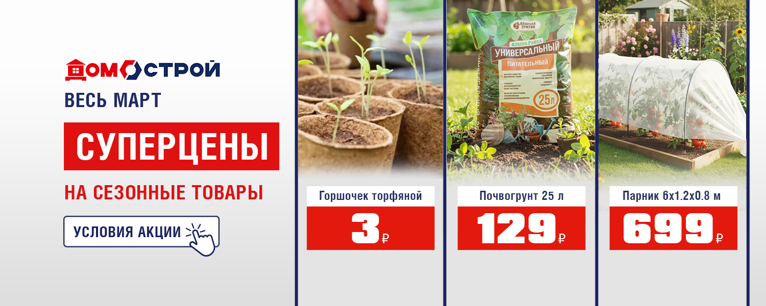 Только до 31 марта в ДомоСтрой суперцены на сезонные товары для дачи и сада! Успейте заказать на сайте или приобрести в магазине.