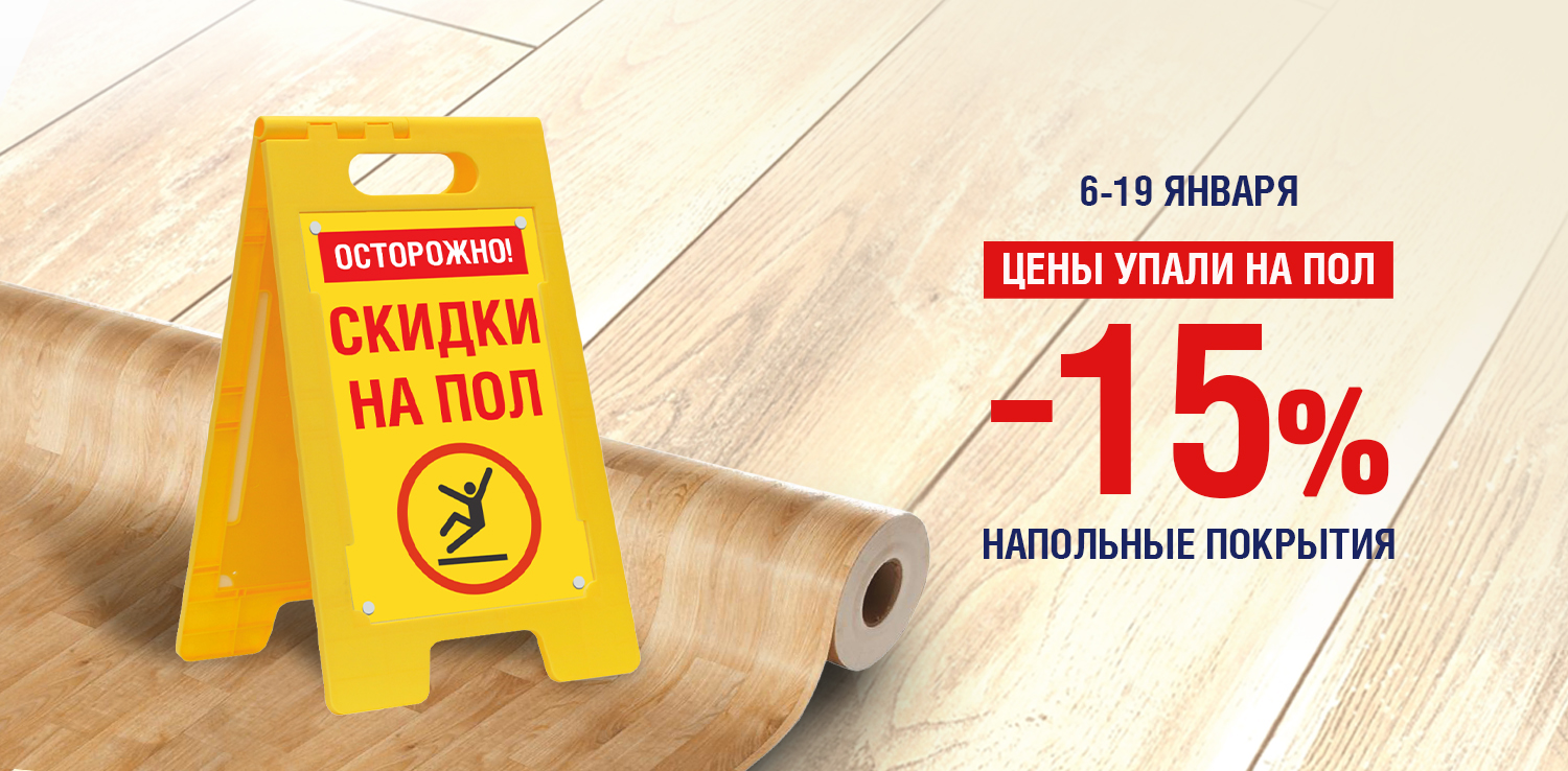 Распродажа напольных покрытий в сети ДомоСтрой! С 6 по 19 января — скидка 15% на напольные покрытия. Это отличная возможность обновить интерьер по привлекательным ценам!