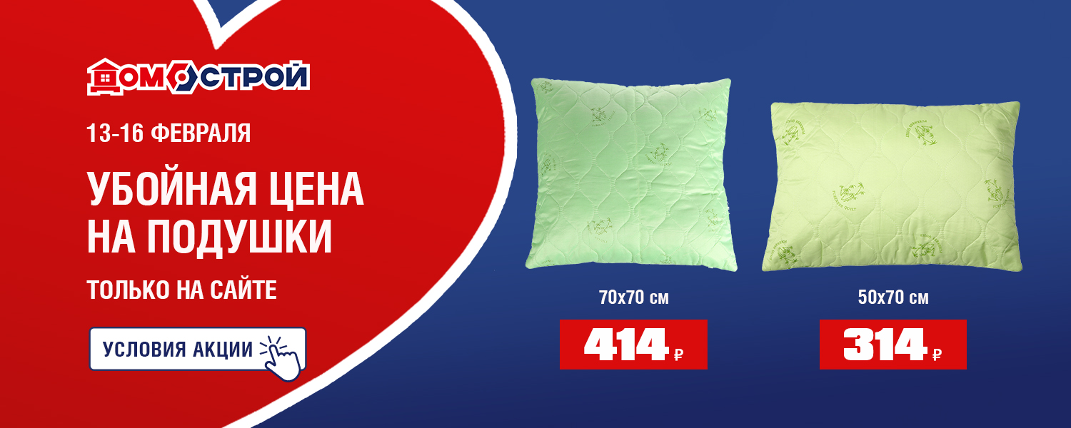 Условия отличаются: Ивдель, Первоуральск - в акции участвует только арт. ВЧ997 Подушка 50х70 см - 314 ₽; Красноуфимск, Реж, Тюмень - в акции участвует только арт. ВЧ999 Подушка 70х70 см - 414 ₽.